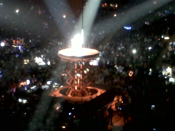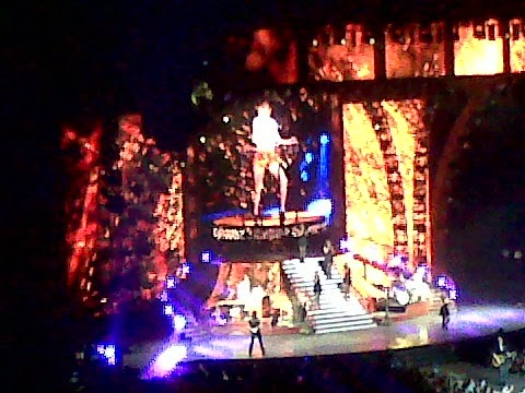 When we arrived, the support act were just wrapping up -it turned out to be The Vamps, a band whose music I am vaguely familiar with, but who I'll be listening to more now. Then came the inevitable gap between them rounding up and Miss Swift coming onstage, at which point we took the opportunity to survey the audience from our vantage point. A scuffle amongst the floor level crowd and a gathering of bodyguards centred around a middle-aged woman indicated that Taylor Swift's mother had arrived.