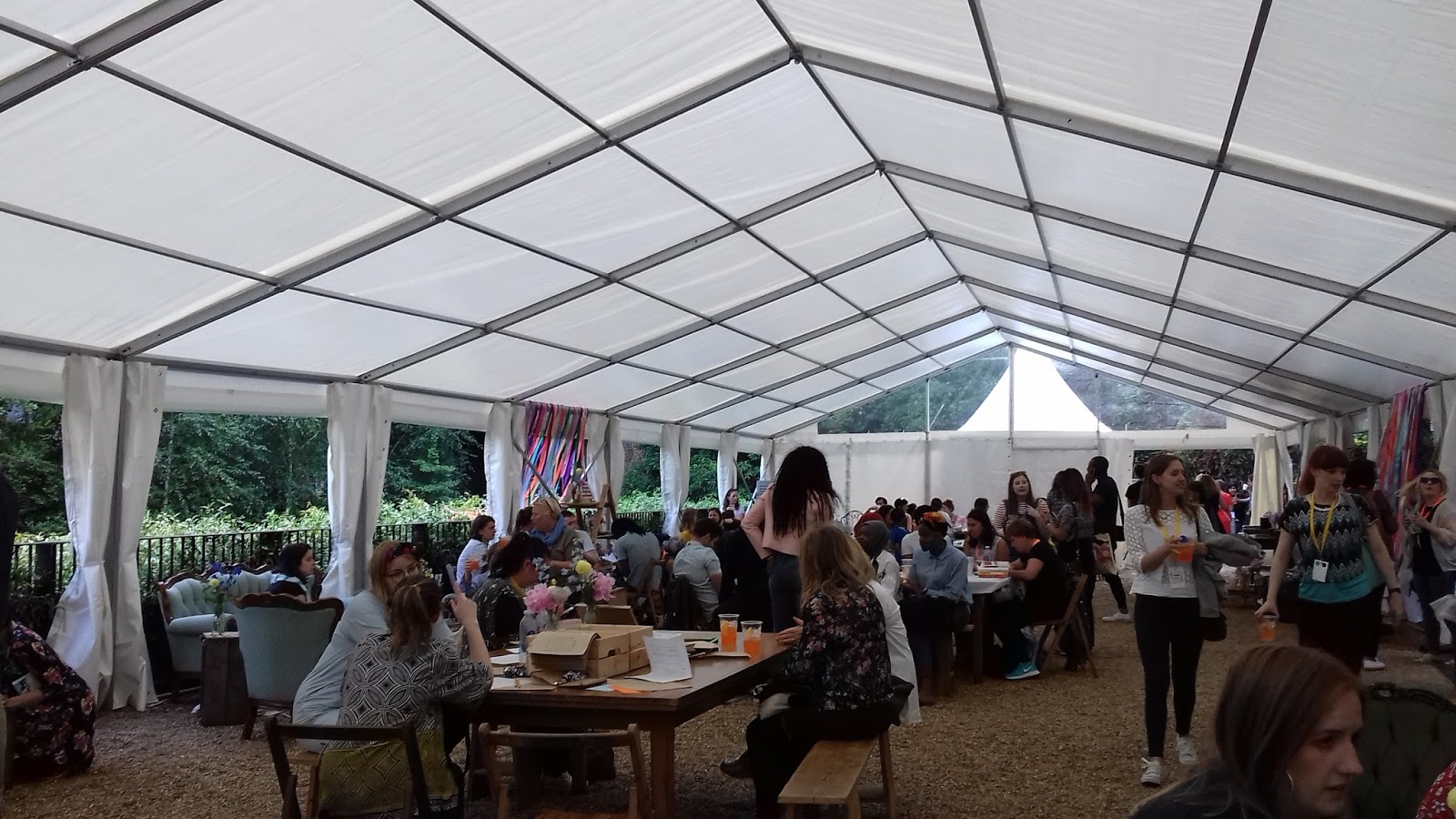 The building itself is beautiful, dripping in history and pomp, and really fired up my inner London geek. The wooden floorboards and sweeping staircase of the entrance hall gave way to the tea room, a gorgeous, cosy space with floor to ceiling windows and stylish chandeliers. Through another set of doors was the garden, and down a set of worn stone stairs, the highlight of the festival; the marquee.