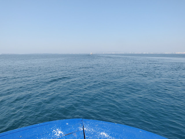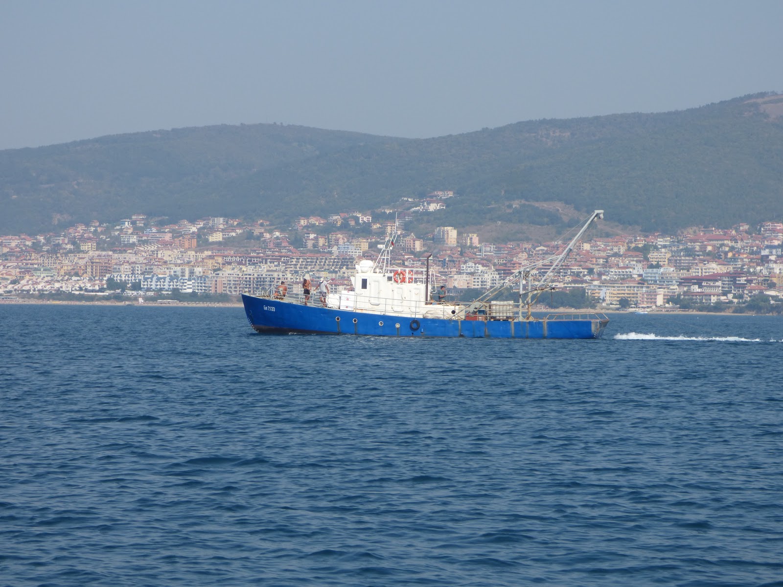 But there was nothing there. A small boat broke the flat horizon a couple of miles ahead, but other than that, there was nothing between us and the distant shore of Nessebar. We had misunderstood his gesturing.