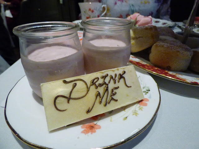 The 'eat me' and 'drink me' signs were a nice touch, although the yoghurty type substance was an odd addition to afternoon tea, and one we could have lived without.