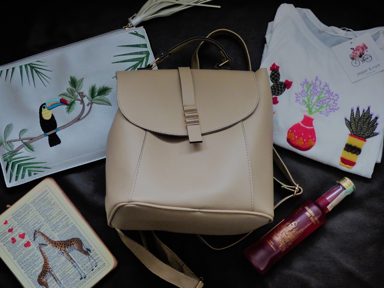 I've been trying SO hard to stay out of shops, so my main purchases this month were my holiday souvenirs (photo above). The toucan clutch bag and embroidered top both came from a little boutique shop near our hotel, and the giraffe picture was from a street stall in Nessebar. It combines two of my favourite things - animals and words - so I couldn't resist. The bottle is rose liqeur, something I developed a penchant for while in Bulgaria, and the rucksack is the perfect size for work.