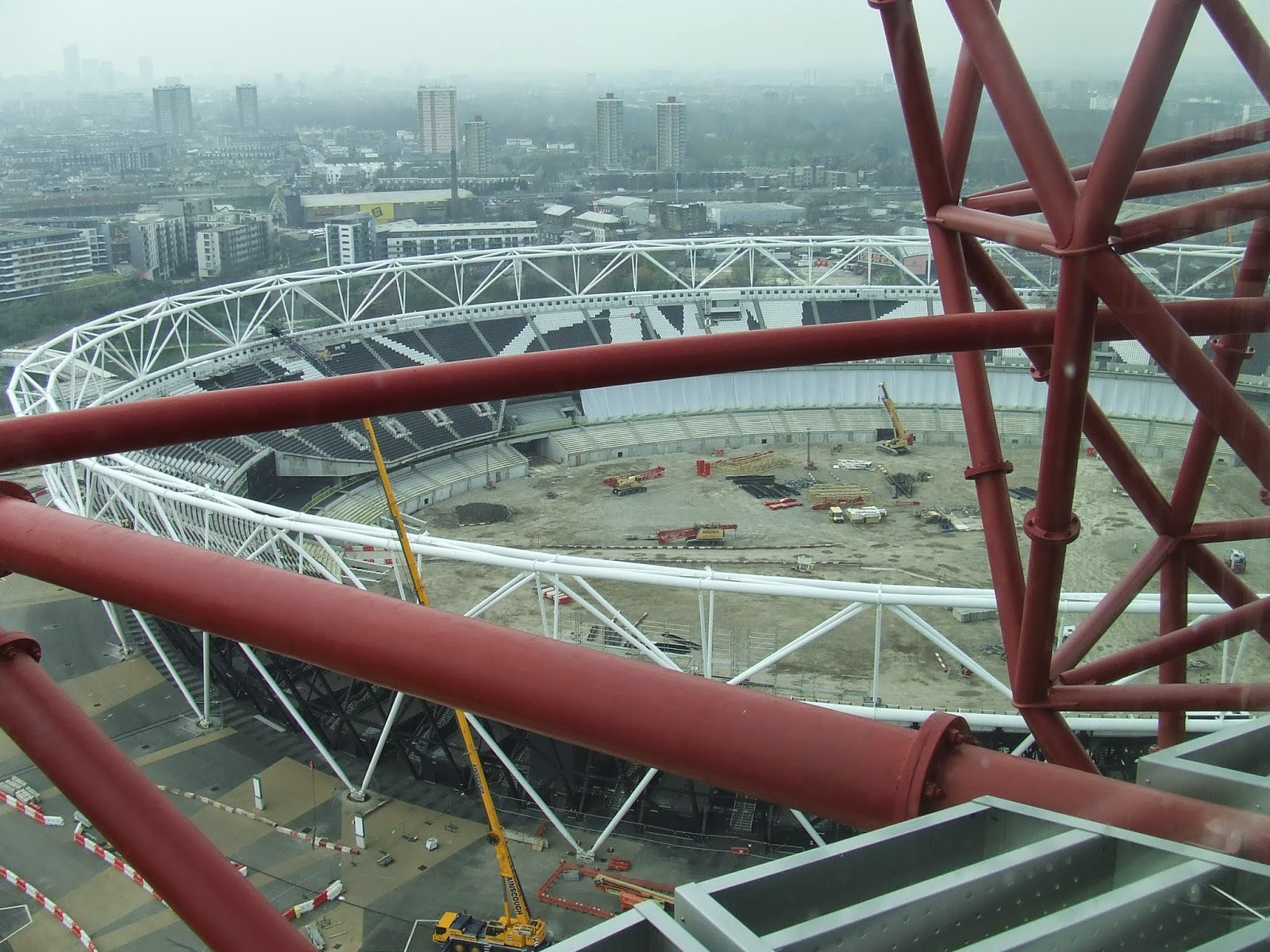 The Orbit overlooks the Olympic stadium, and happily, it has no roof at the moment, as it is under redevelopment for when West Ham take it over in 2016, giving a great view into the stadium itself.