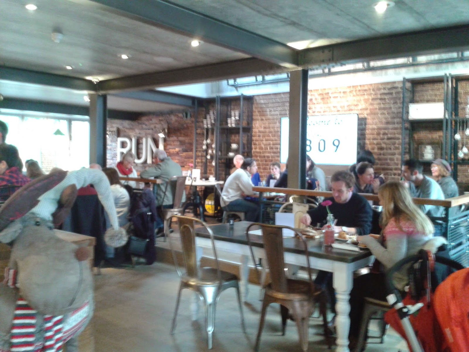 The decor is certainly appealing - the main bulk of the inner walls consist of exposed brick, with metal shelves and beams, giving the feel of a trendily converted warehouse. There's a vague nod to a sporty theme throughout (perhaps that's the reason for the healthy menu) but it's certainly not overbearing enough to deter anyone for whom sport is an unfamiliar concept. Bike racks aplenty stand proudly outside, and a glance into the back garden area revealed dog lead hooks and even a canine water bowl.
